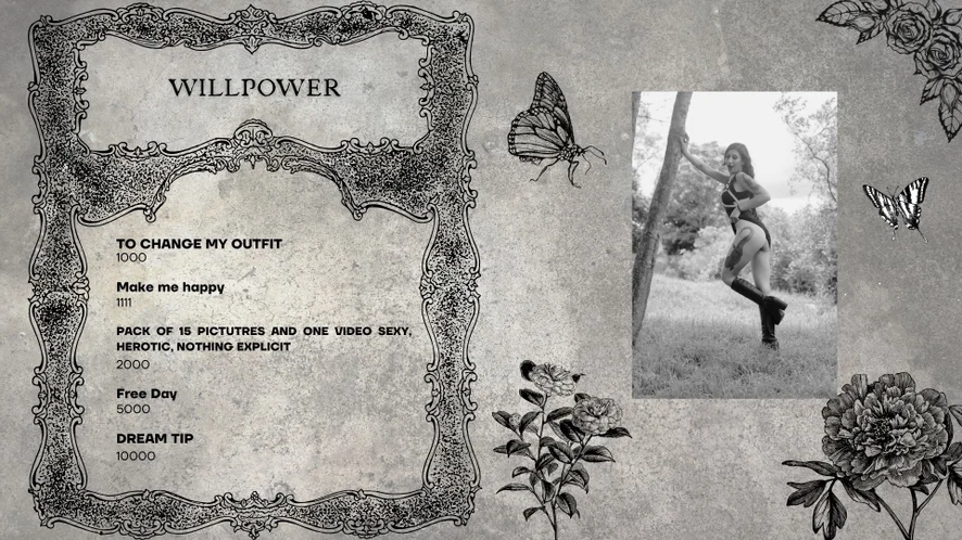 Fetis Picioare, Jucării pentru sfârcuri, Handjob, Pantofi cu toc, Improscare, Pe la spate, Masturbare cu degetele, Dildo sau Vibrator, Joc de rol, Felație, Ahegao, Anal, Plesnire, Dans Erotic, Gagging, Topless